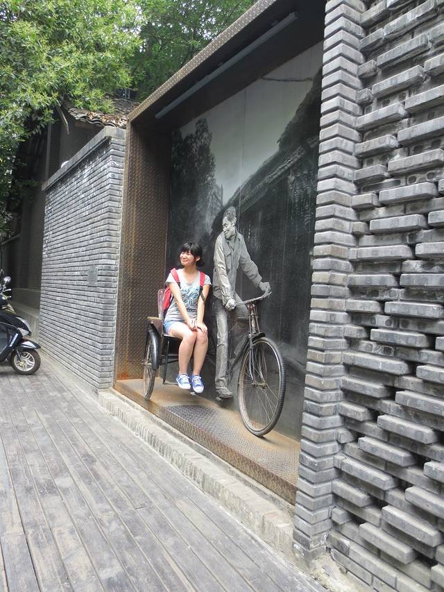 只见墙上嵌镶着很多儿时用过的碾磨、柴灶风箱等生活用品,很有意思,不少美女以此为背景拍照留念。