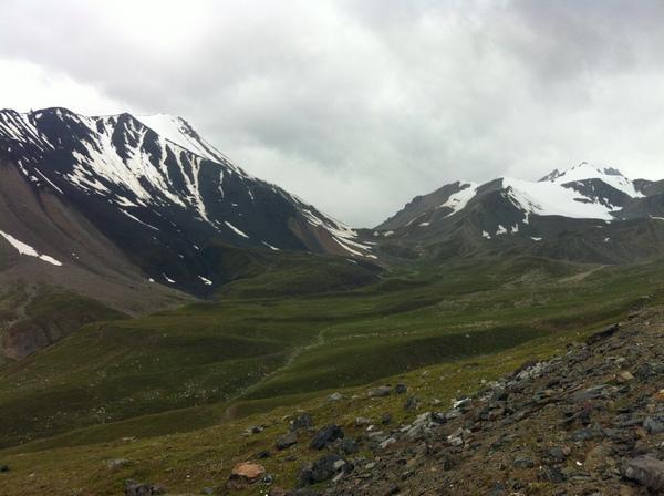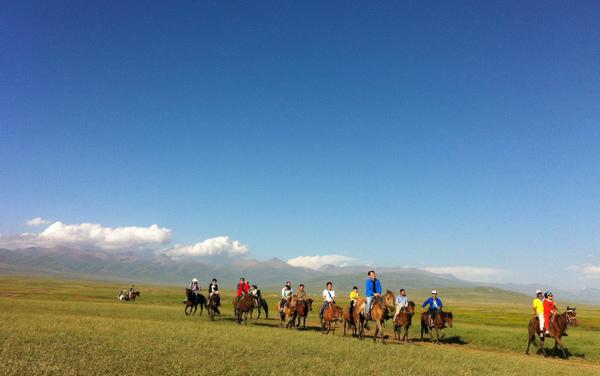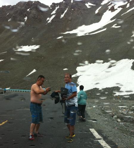 当日上午准备好馕饼、青瓜、西红柿等食物之后,10点准时从独山子出发,翻越天山,前往巴音布鲁克大草原。全程280公里,途中经过终年积雪的乔 尔玛达坂(海拔3650米)和玉希莫勒盖达坂。当日惊喜:行车到天山南麓的界塔河谷时见哈萨克农家乐,遂住下,当晚学牧民住了一晚毡房,吃清炖羊肉,跳民族舞,与少数民族一起唱和。第二天早上,登上河边高山,看日出,与牧民一起早餐,用天山雪水洗 脸漱口,民族大家乐,开心无限。