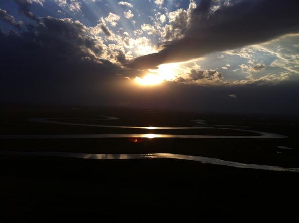 当日惊喜:30多人在草原上骑马狂奔,一路大呼小叫,非常过瘾。最为开心的是相机从包 中颠出去能够找回来。九曲十八湾看壮美落日遇浓云蔽日有点遗憾。