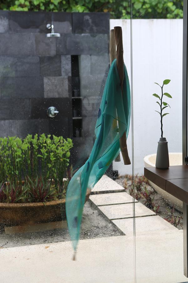露天院子,也是沙屋的其中一个浴室,花木扶疏,精致的浴缸和花洒。每次洗澡都可以看到一只壁虎在灰墙上忧伤的徘徊。是的,从未发现过两只同行。