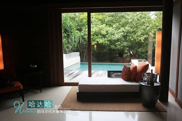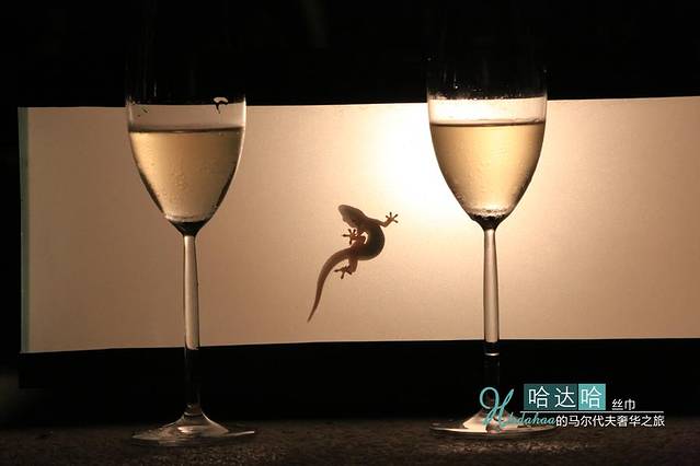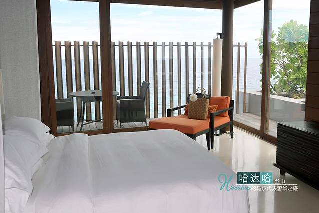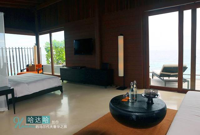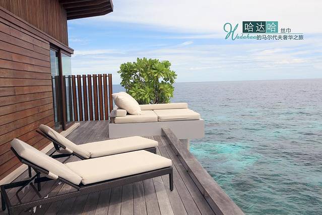 几乎是欢呼着奔向我们的新家。满世界的海洋扑面而来。小黑拉进行李,说了一大通你们好幸运和夸奖这屋子的话,赢得了双倍小费后皆大欢喜离去。语言已经无法形容这51号水屋的美,照片其实也无法形容。因为摄影大叔已经幸福的无心拍照了。他甚至忘记拍下与印度洋隔着落地玻璃相互一览无余的美妙浴室。诶,能让人感到幸福的那种美,一生究竟能体会多少次呢?