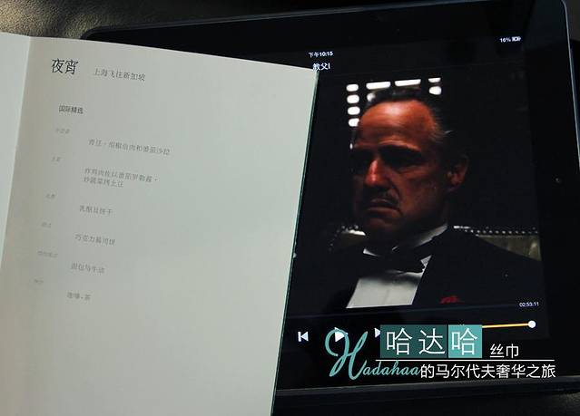 起飞的失重感带来脱离工作压力的小兴奋,机窗外是渐渐远去的黯淡现实生活。身姿曼妙的新航空姐送来颇具仪式感的晚餐菜单,ipad已经打开到《教父》电影,把柔软的毯子紧紧裹住身体,寻找到一个最舒适角度。啊噢,女巫真的,真的要去马尔代夫啦。