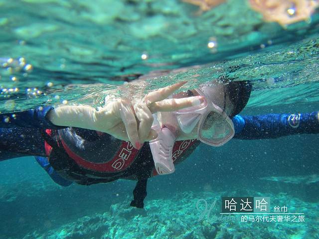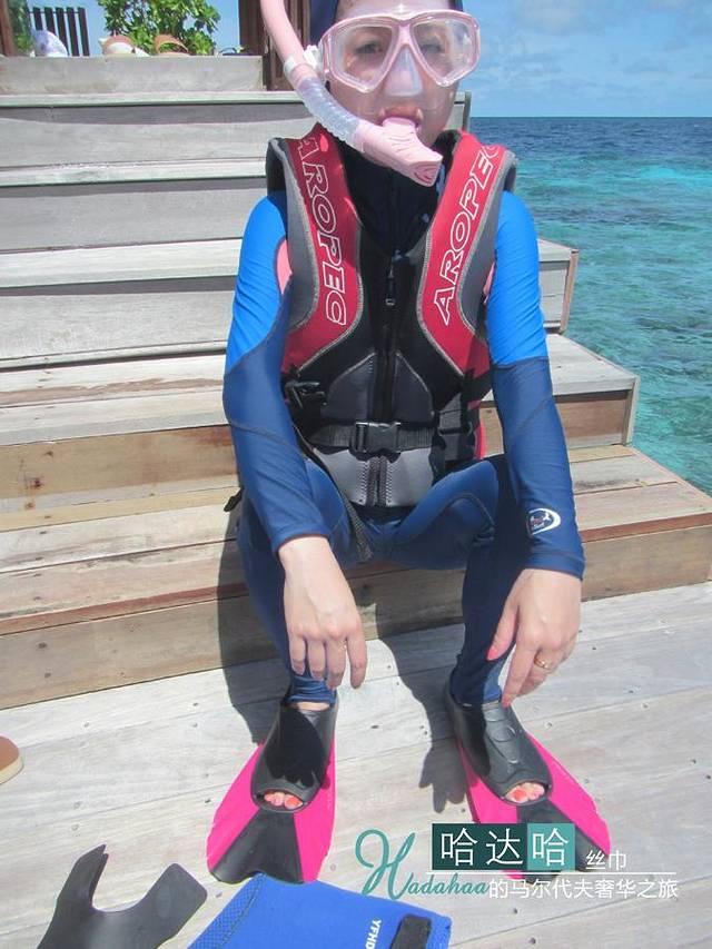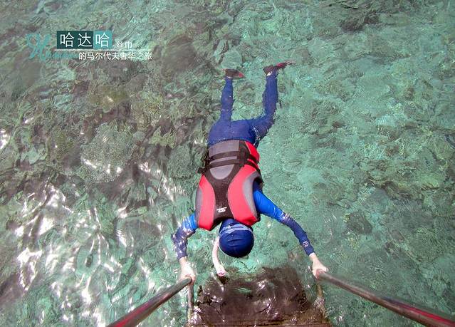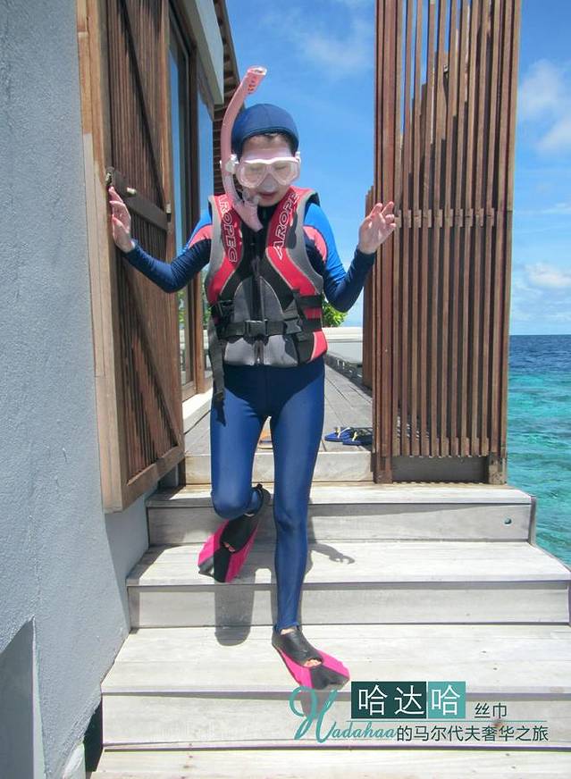 来马尔代夫,来哈达哈,女巫是为了爱上海洋,更多人是为了尝试全世界最优质的潜水。打开水屋露台一侧的小木门,沿着一道窄窄梯子,走下去就抵达另外一个水下天堂。赶紧换上淘宝来的全套装备,等装束完毕,女巫俨然像个深海来客,一步步挪下去,怔怔坐在烈日的台阶上发呆,心中胆怯的回忆着浮潜呼吸要领。