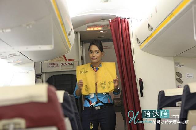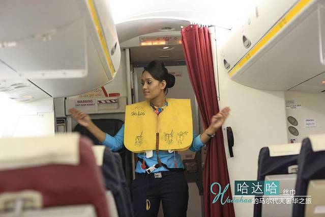 内陆飞机虽然小,可是不能小看它。它的空中小姐可是超级美女,经得起任何角度的久久凝视。当她开始认真演示救生程序时,男人们目不转睛。她和飞机下掠过的马尔代夫100多座白沙蓝海的岛屿一样迷人,让人忍不住看了还想再看一眼。怎么也看不够。