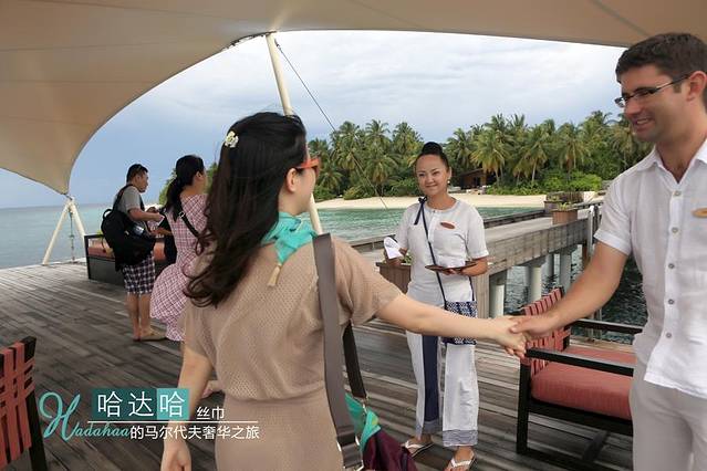 当地时间下午四点半,阴天的淡淡晴朗,与世隔绝的哈达哈岛屿终于在女巫期盼视线里出现。柏悦哈达哈酒店是环礁内第1家顶级度假饭店,据说四周环绕着150多个不受世人打扰的自然岛屿,安静绝美。接下来,我们将在这里渡过无与伦比的六天四夜。