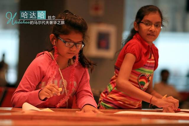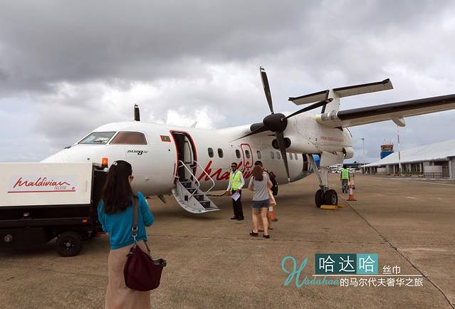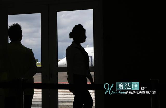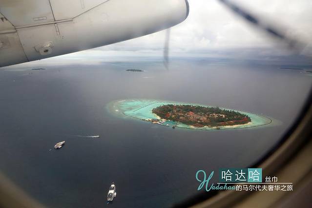 当地正午时分,我们终于抵达马尔代夫首都马累。似乎是雨后,地面湿润,气温适宜。机场很小,下了飞机,大家步行从停机场走到航空站。过关很快,等行李却很慢。他们的文字就像一只只奔跑的蚂蚁。一个瘦小的长得像黑蚂蚁的小黑同学操着交织半生中文的英文举着柏悦酒店标识牌在门口接到我们,于是聚集一行六人再走去不远处一个内陆迷你机场,深蓝浅蓝交替的大海就在路途的左手面100米距离微微翻滚波浪。克制着想走近它的兴奋,我们还需要再搭乘1个小时的内陆飞机,前往一个不知名小岛降落。