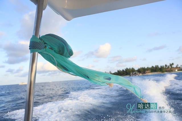 黄昏,快艇到了,它将载送我们踏上回归之路。再美的风景和时光,我们也得挥手笑笑说再见吧,无论旅行多遥远,它都悄悄带领着我们驶向自我。将这块也叫做“哈达哈”的丝巾束在远去的快艇上,让它随海风飘扬,让它再留恋的看一眼生命中的哈达哈岛屿。
