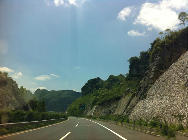 路线:广西河池市出发,一直沿着G75兰海高速,往贵州方向(此条高速是去年才开通的)。可以说是全程高速。沿着大路一直走,直到看见“荔波、小七孔”的路牌后,就向右驶出主干道,沿着S88麻驾高速往前一直向着小七孔的方向大约行至30公里便到了。这时,下了小七孔收费站,往前开两公里到了尽头,向左拐,进入了香草园的基地。。。