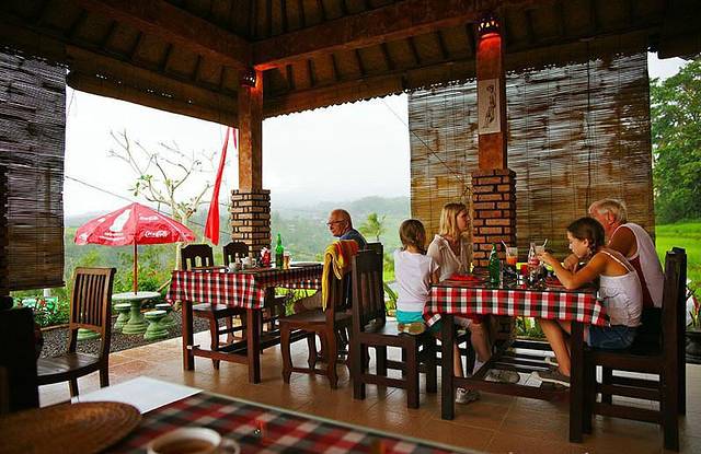 这家店位于乌布Ubud 的 Padang Tegal路上,餐厅位于稻田中央,走过一段短短的田间小路才能到达。