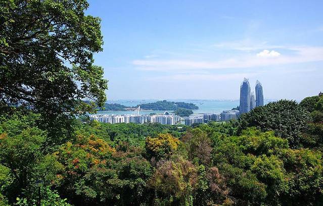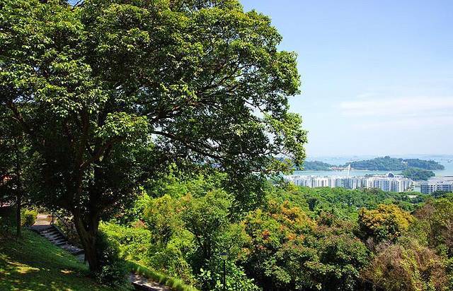 登顶遥望,能看到市内林立的建筑群,繁忙的新加坡海港,东南亚最大的石油加工基地。晴天的话还能看到印度尼西亚和马来西亚。
