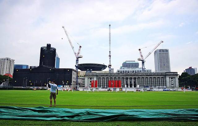 车子停在市政厅附近球场对面,下车后,地接把团友集合,讲解了,到鱼尾狮的路线,然后给了40分钟的时间。地接和导游就离开了。