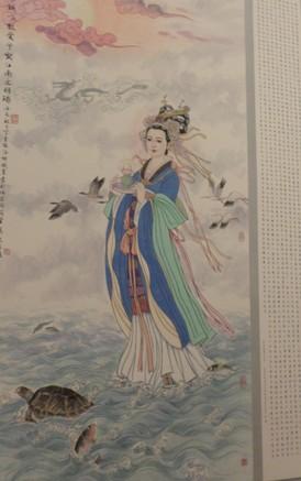 8:30天津至北京南站,晕,二等票得等1小时后才有。算了,和女儿俩人也享受一下,买了两张一等座。享受中转眼即到北京。从出口出来办理一卡通,女儿非常高兴,呵呵,我也有北京一卡通了。坐地铁4号线至平安里转6号线至东四,E出口向右转一个大路口即到中国美术馆。人不多,因前一天从网上预约了票,所以直接取票进入。虽然有1、3、5层展馆,但只有1层有展览,不错,正好赶上马泉老师的采访,了解了《洛神图》及洛神斌的神韵。
