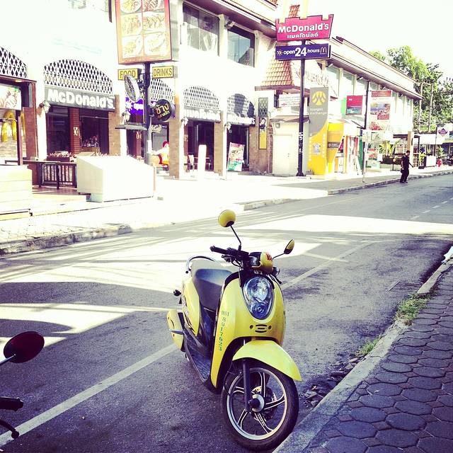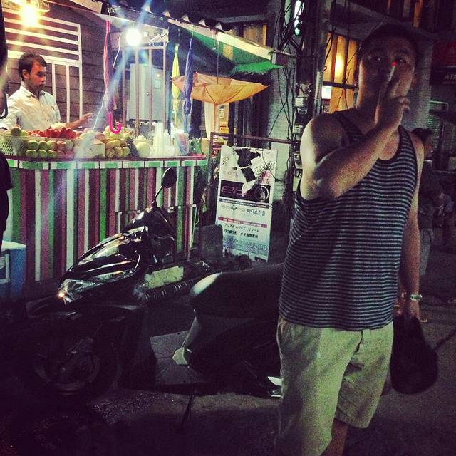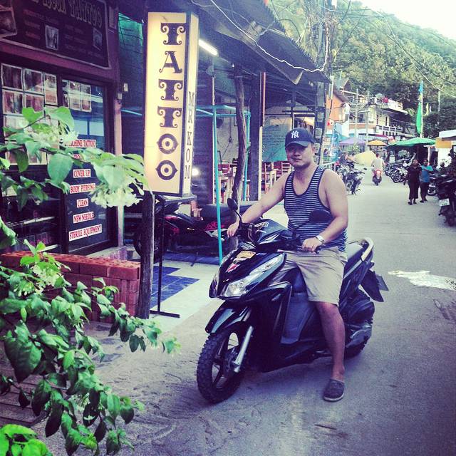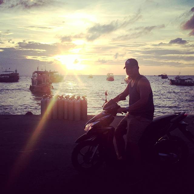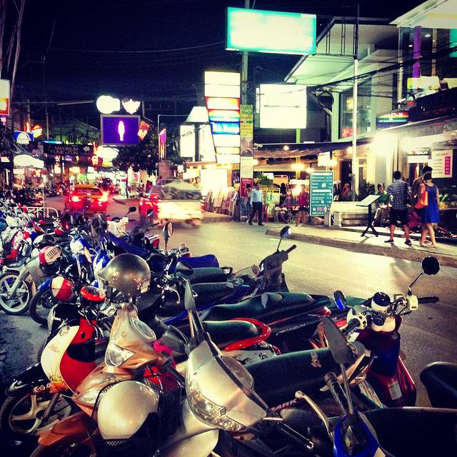 涛岛上有很多借摩托的地方,浮潜一日游回酒店洗了把澡后就在酒店对面借了辆小摩托(约RMB50元,可借24小时)去夜游码头(号称涛岛CBD),晚上非常热闹