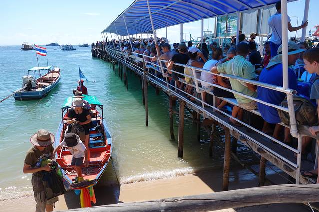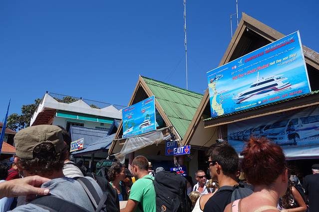 酒店免费车送我们去Lomprayah的码头回苏梅岛,拿着来之前给的回程票凭证去码头窗口登记领彩色粘纸和船票,码头人超级多,但还是比较有秩序的,L公司的车会送大家去各自的酒店