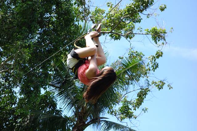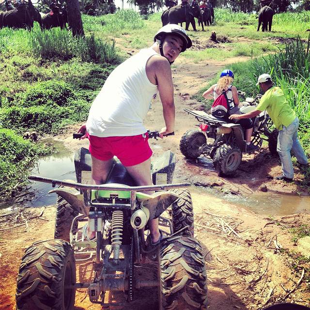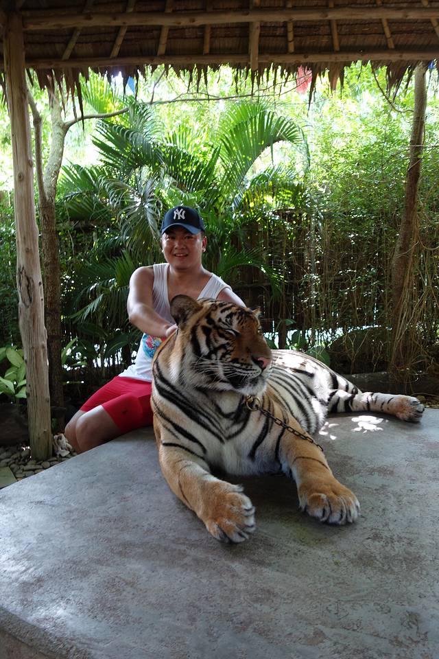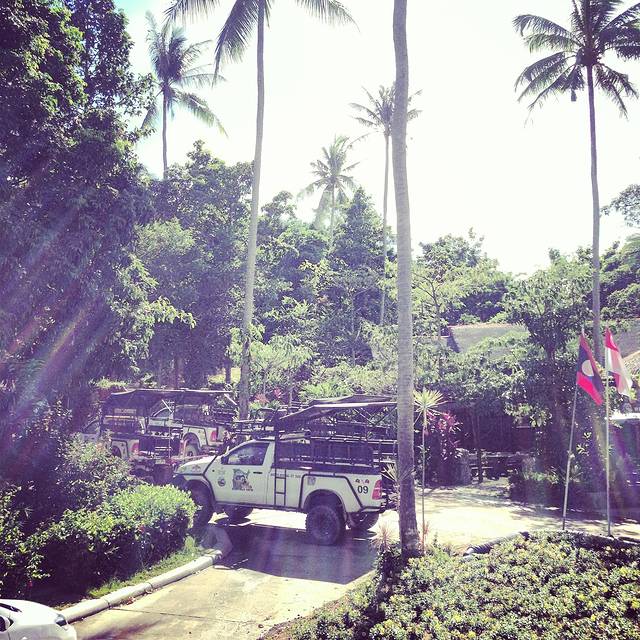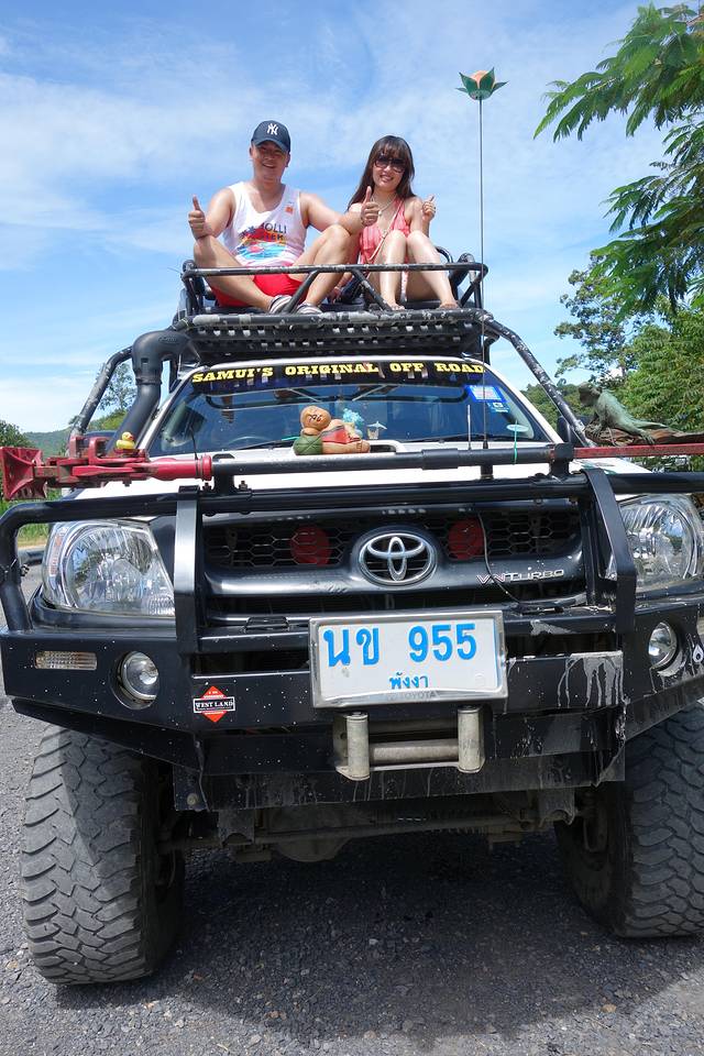 淘宝上预定的半日游,也可以到苏梅去订,价格都差不多,半日游的内容有与老虎合影、骑大象、索道、越野卡丁车、爬山看瀑布,Jeep车接送,司机还会安排我们轮流坐到车顶,视野非常开阔也很刺激,司机兼导游非常nice,在我们活动时不停给我们拍照,离开的时候给了他一些小费以示感谢