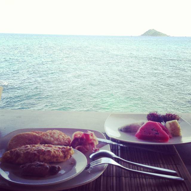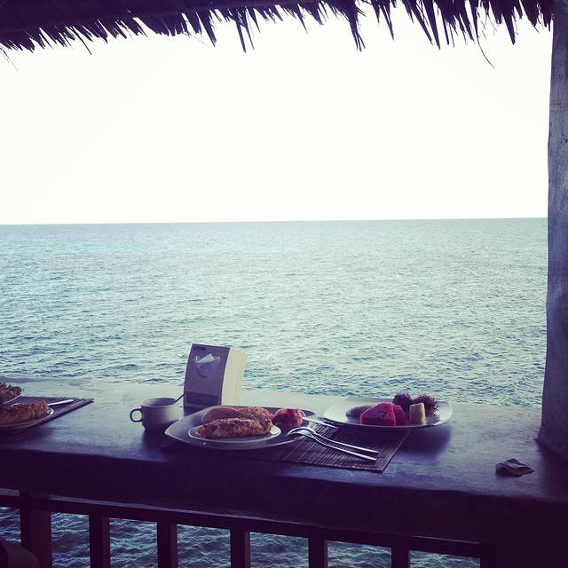 面海吃早餐,听海浪拍打礁石的声音,看阳光慢慢洒在海面上,泛起粼粼波光