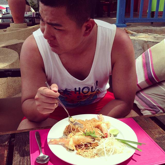 半日游后回到酒店沙滩吃午餐,点了炒面和烤物,味道很不错
