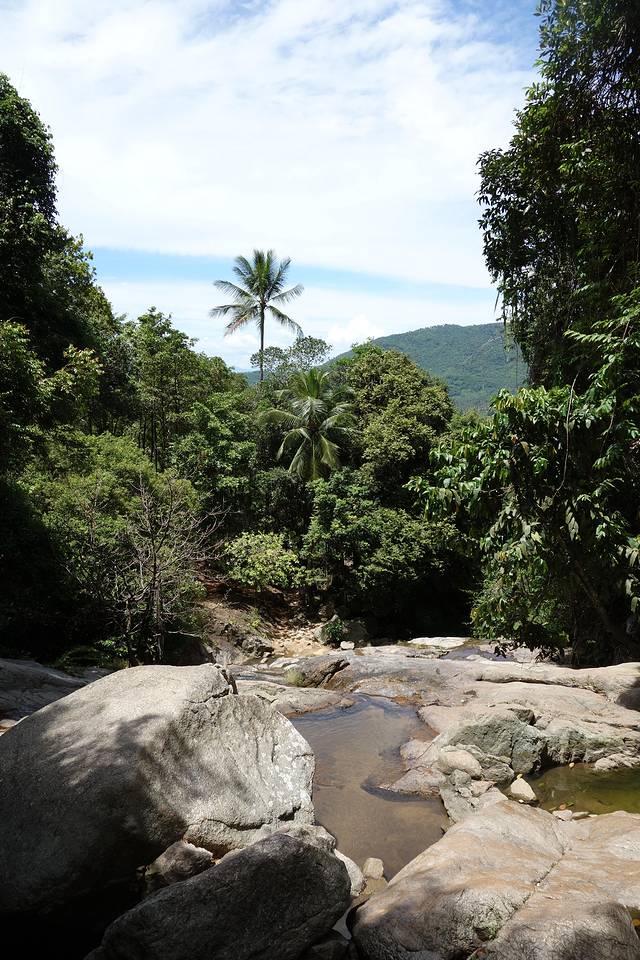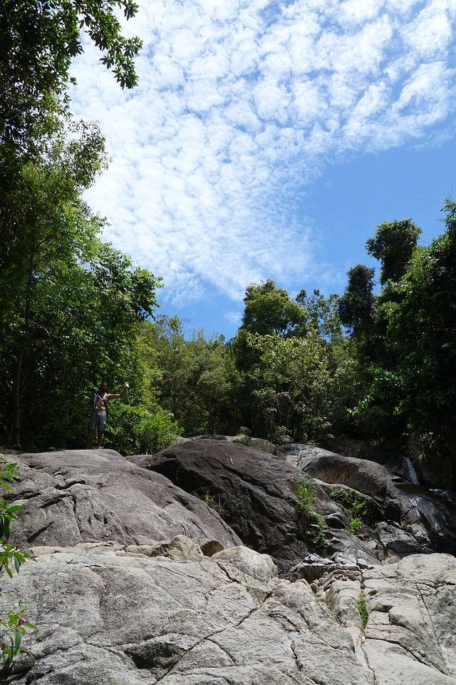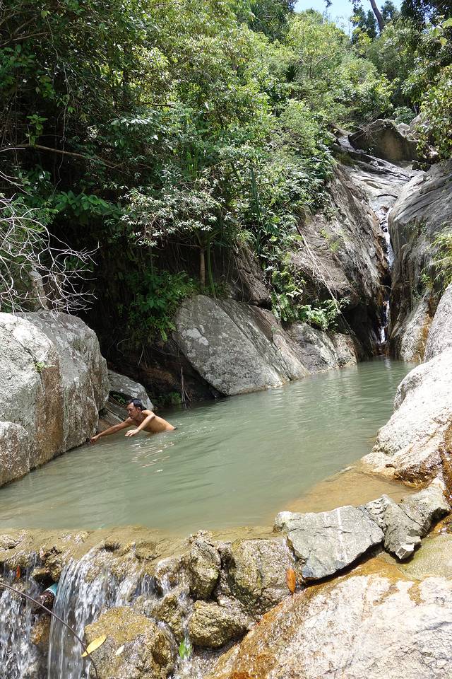 最后个活动是爬山看瀑布,山路走到半山就开始陡了,而且没有正规的路可以爬,也没什么标识,这时候有个当地人出现,给我们指路,还告诉我们上面有个pool可以swim,我穿着人字拖艰难地爬上去了,然后是个瀑布水池,那个当地人就立马脱衣服跳进去游泳了,我们看看没什么东西就准备下山,当地人接了个电话后又说他带我们下去,还帮我们在山上拍了照片,到了山下由于非常感谢他,给了他根中华和一点小费,离开的时候胖子才说他在山上其实有点忐忑,因为山上就我们3个,如果是坏人,还打电话叫接应的就完了,他说他一直在观察这个人,结果。。。还真是个热心人。。。