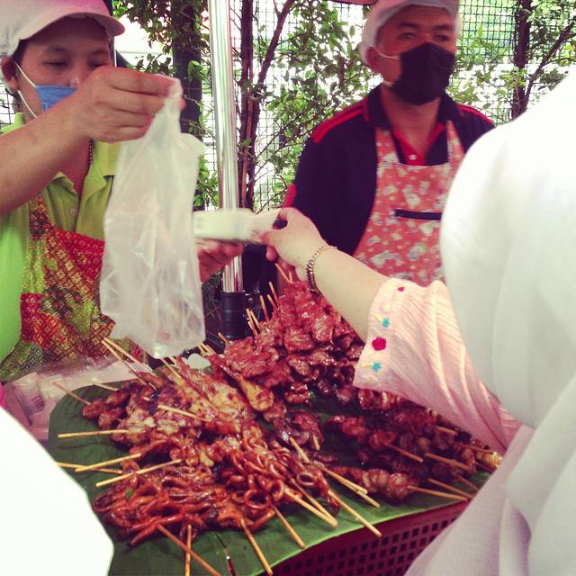 去码头等船的时候先在码头小吃摊买了pancake和炸鸡吃,味道不错
