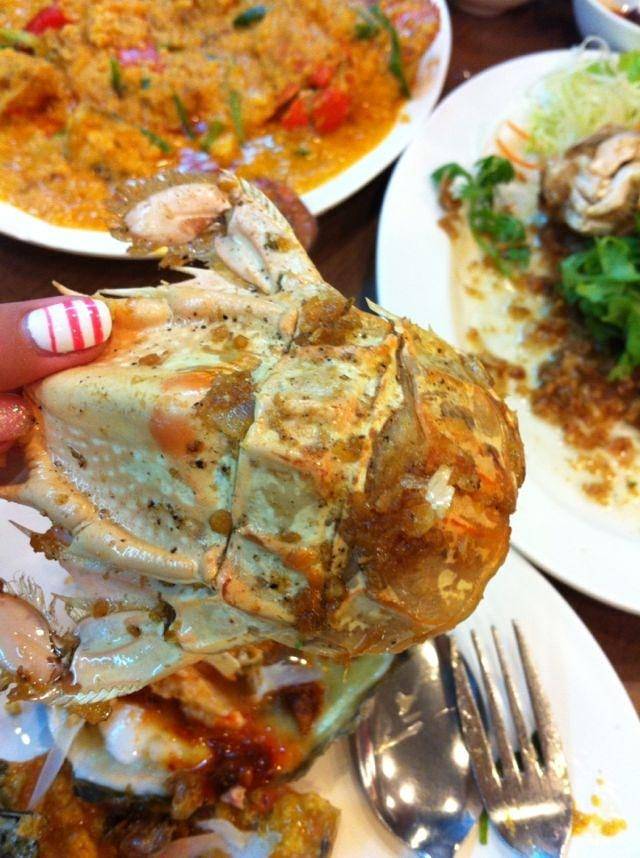 下了飞机就直奔「建兴酒家」,生蚝太肥美了,配上泰式酱料,好吃到想哭!赖尿虾好肥大,一只就300G~最出名的是咖喱蟹,口味很特别!mango with sticky rice也是超赞的~这顿是此次泰国行觉得最美味的一顿了[good]才1300ba哟!