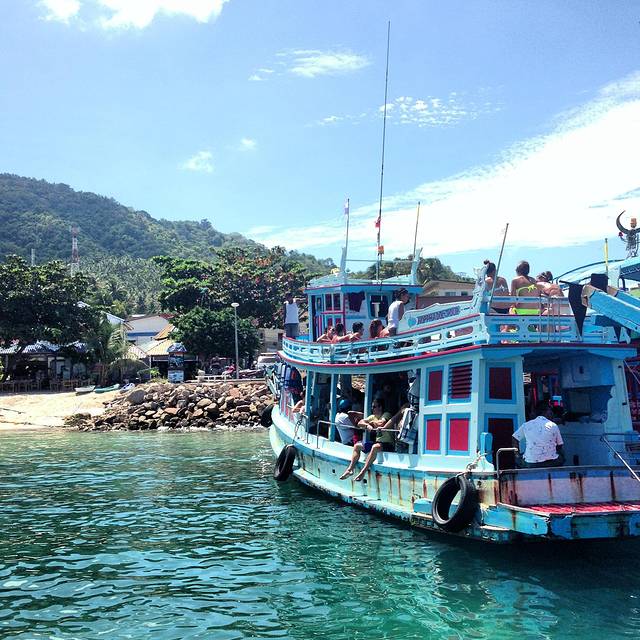 船票在Lomprayah公司官网上直接可以定(大约1100株来回/人),我们是在淘宝上一起顶的,顺便订了接机服务;到了码头登记后,会根据各自的目的地给你发各种颜色的贴纸,然后根据贴纸颜色安排上船下船,回来的船票凭证会一起给你,要保存好哟
