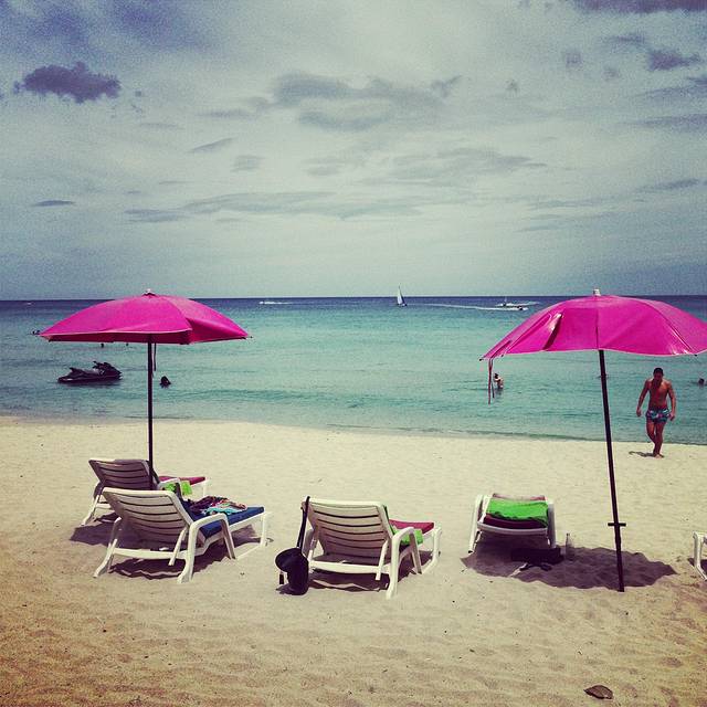 这个酒店地理位置非常好,就在海滩闹市区,酒店配色也很漂亮很有特色,当然由于在闹市区,所以也比较吵,不过本来就打算泡夜市也无所谓了,酒店门口的酒吧晚上还有驻唱~酒店前的海滩很漂亮,枚红色的遮阳伞拍照也很美