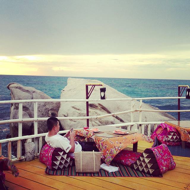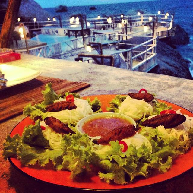 餐厅需要预约,可以在酒店前台预定,由于是露天餐厅,看别人攻略说靠岩石的会被海浪打到,可以和酒店的人说离石头远点~我们去的那天由于突然下雨,不能坐在甲板上吃饭有点小遗憾