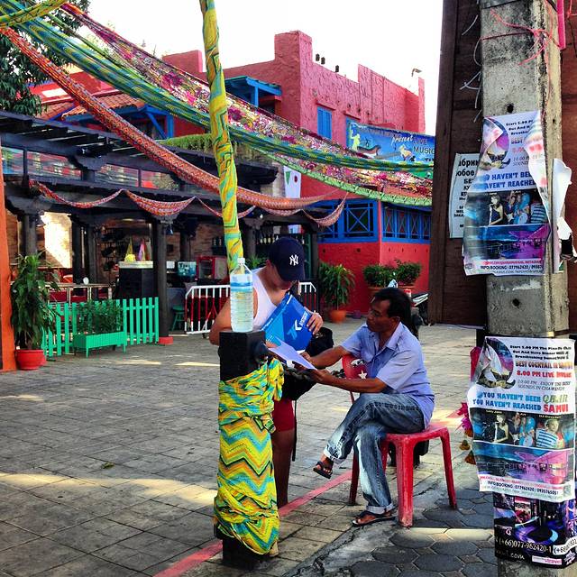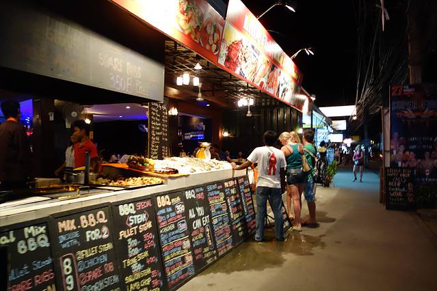 査汶海滩非常热闹,海滩后边一条街满是小商品店、饭店和酒吧,是享受夜生活的好去处,还有人妖show和泰拳show