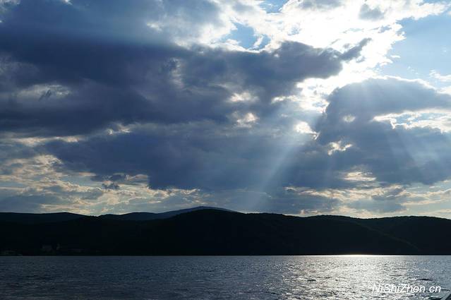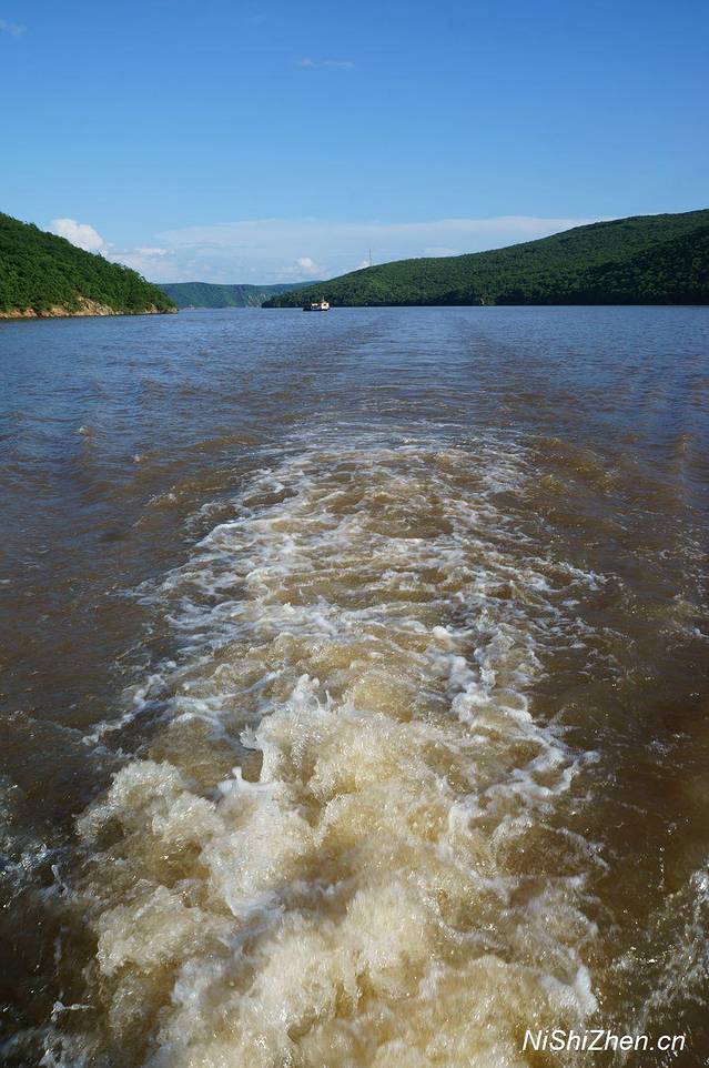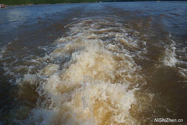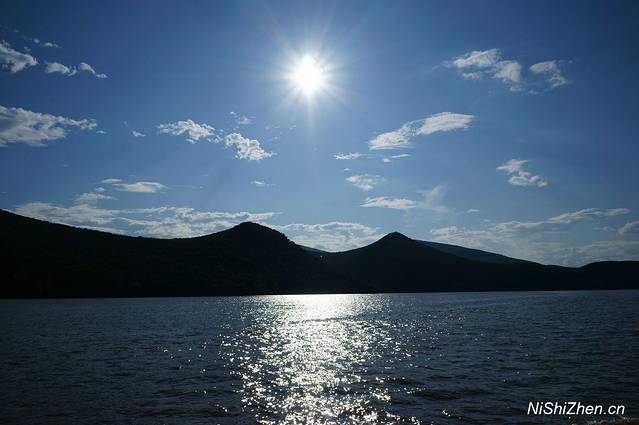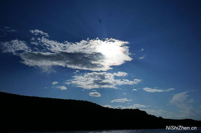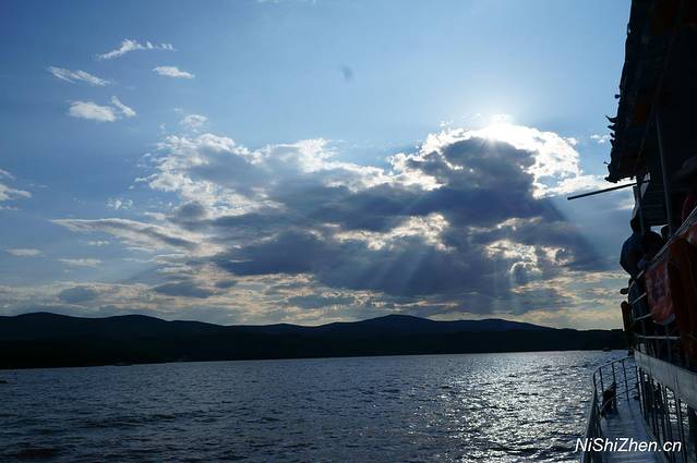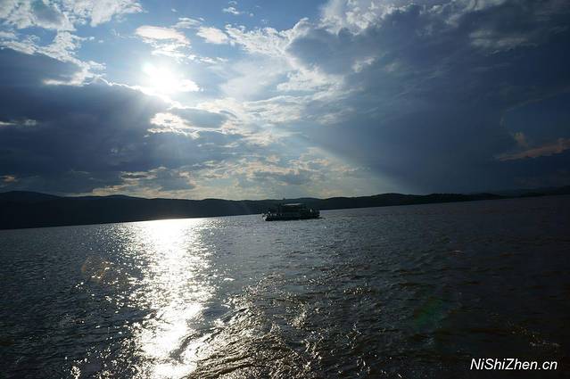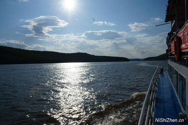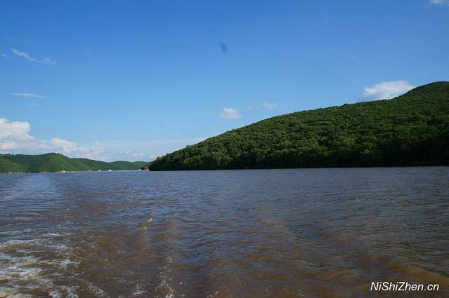 当天天气很好,蓝天白云,两侧绿山,这个季节很适合坐在船上享受两岸的自然美景,太阳照得暖暖的,觉得晒就打开小伞,有风,不大,不像海风般那么有力量,但微凉。拍了些湖面、天空、太阳、云朵的照片,感觉很舒服。
