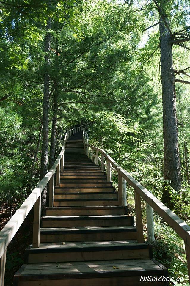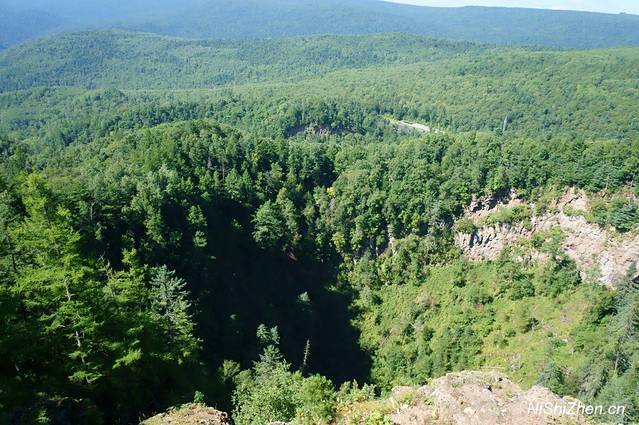 (3)从镜泊湖大门到地下森林景区门口后,还要坐一段车往山上走,全程需要约1个小时。之后就是游览火山口了,路线是环状的,很多旅行团只带领走4号火山口,从入口开始向下走,然后向上返回,这样的路程时间1小时。我们是自己去的,先去了3号火山口,然后去的4号火山口,相当于先向上走然后又向下返回,时间花费了2个小时,站在3号火山口上欣赏风光和下面还是有区别的。一路上遇到了很多游客,有年纪很大的老爷爷、老奶奶,为他们登山的精神所感动,但也为他们擦把冷汗,毕竟有的地方台阶是连续的上上下下,个别的也有些陡。