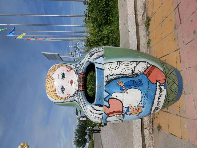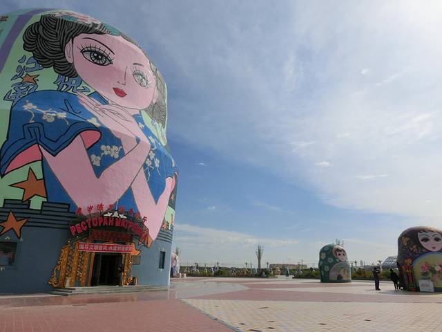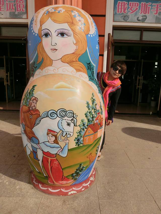 没有进去国门,80元的门票,在外面看了下..国门另一边就是俄罗斯,国际列车在这里过!国门附近有个套娃广场,大大小小的套娃,连垃圾桶也是套娃.
