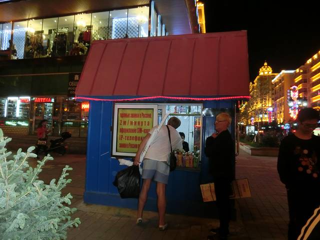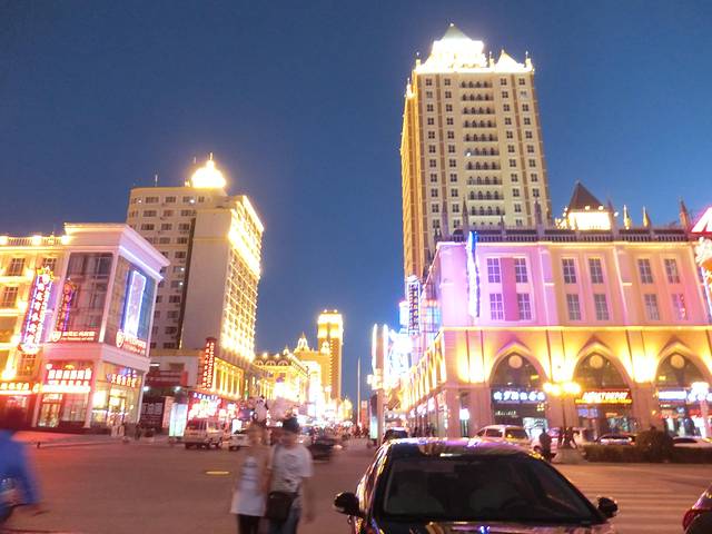 入夜的满洲里有点凉,当然这是对于广东人来说,因为我冷得直哆嗦的时候,街头的俄罗斯大妈还穿短袖...没错,是俄罗斯大妈,因为是中俄蒙边境城市,大街上很多俄国人,听说俄国边境的人要去市区是很远的,想想俄国多大.但是要来满洲里比他们去市区还要近,所以很多边境的俄国人都来满洲里采购日常用品,路边也很多货币兑换店