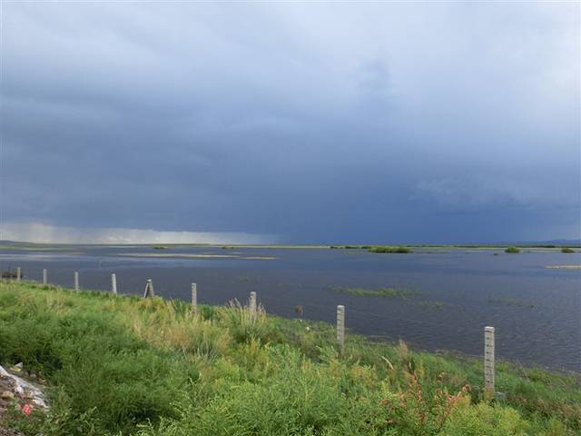由于今年遇水十分充裕,整个达赉湖的水都溢出来似的,把旁边的草原淹没了