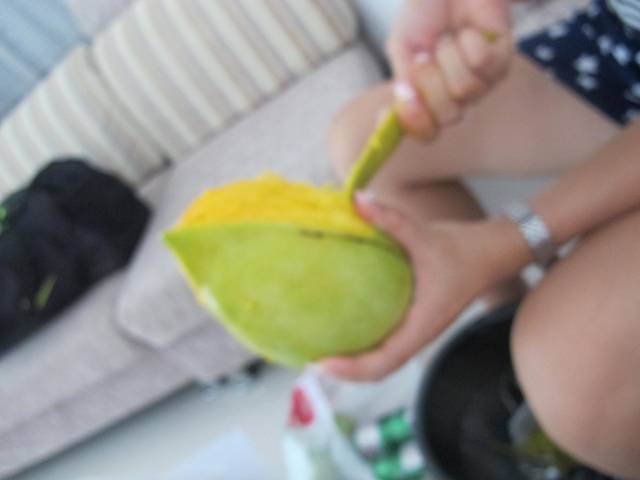 12点50出来的,门口保安说,1点会有温泉的大巴,免费把客人送到大东海地区,夏日百货对面!正好,等了10分钟车就来了,节省了20块钱~下车不远处有个超市,去里面买了点吃的,准备带着去三亚湾酒店去,因为那里的吃的好贵...还吃了2个芒果,好甜啊~