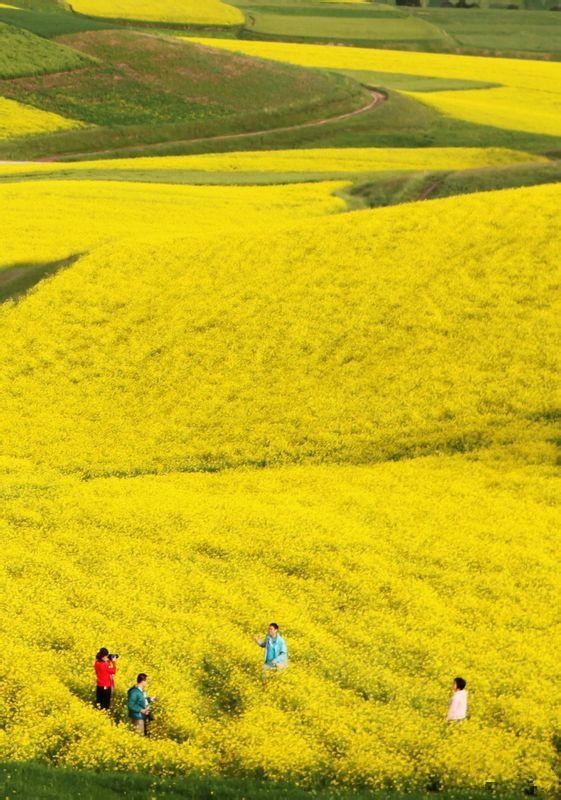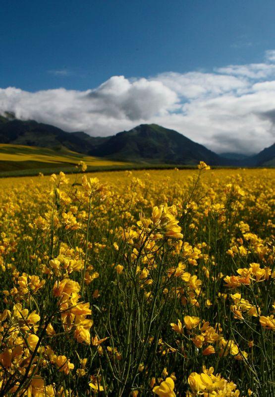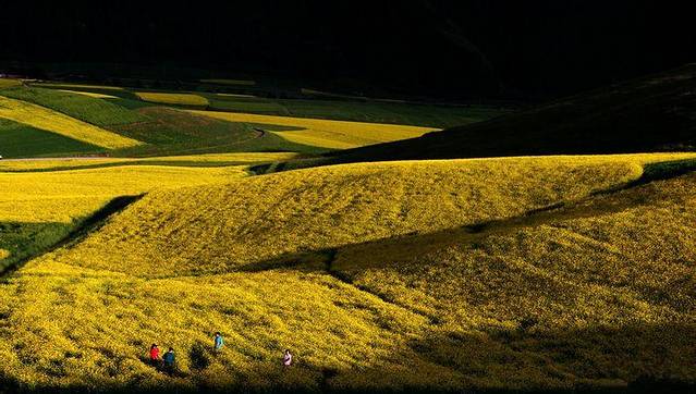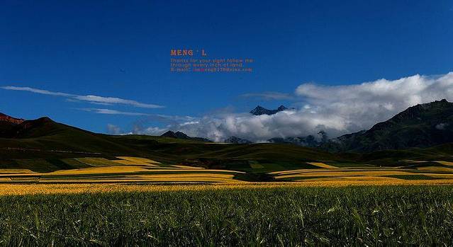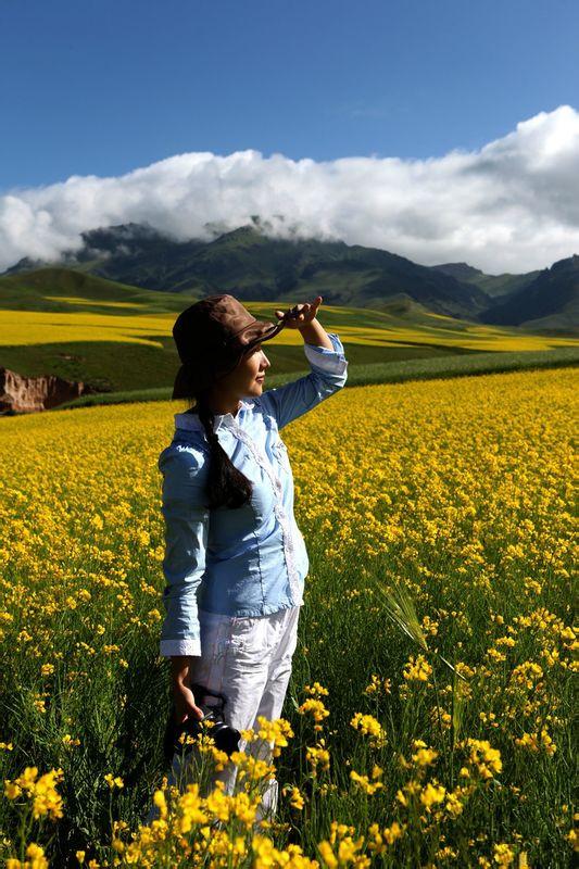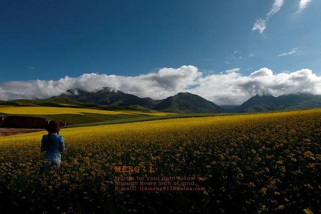 门源的花海的确不是一般的壮观。放眼望去都是金黄色的,如果有蓝天白云岗什卡雪山,那是一幅精致的水彩画。我到的时候,菜花已经败了相当一部分。