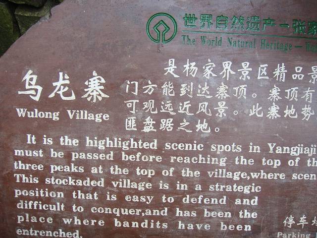 乌龙寨就是乌龙山剿匪记那个土匪窝。其实那一片是杨家界景区,只是环保车的站点叫乌龙寨。下车直接走过停车场,向乌龙寨出发。到一个写乌龙寨餐馆的地方再往前走一点就要分路了,右边是走乌龙寨方向的,左边是走空中走廊的。