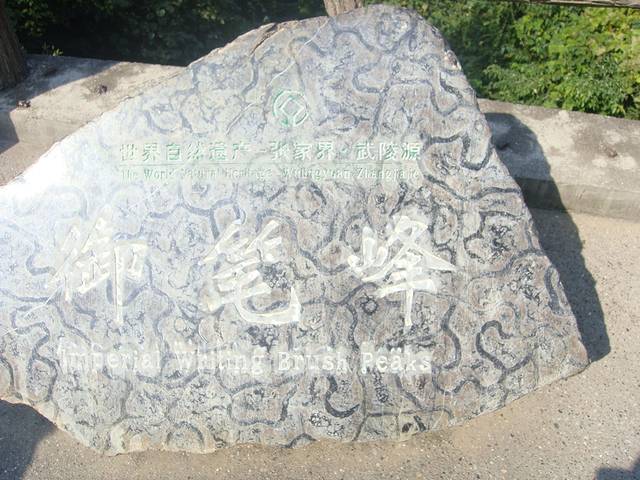 数十座错落有致的秀峰突起,靠右的石峰像倒插的御笔,靠左的石峰似搁笔的江山。是天子山最著名的景点。
