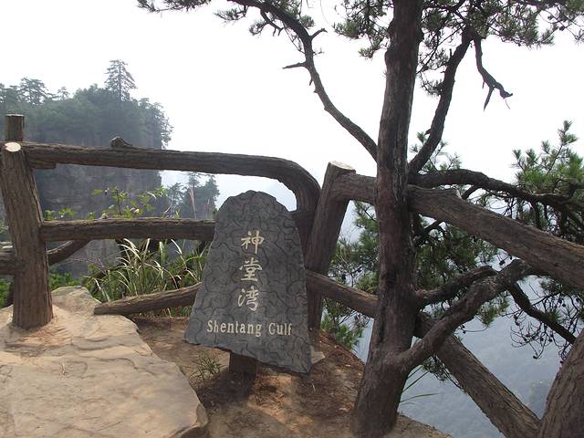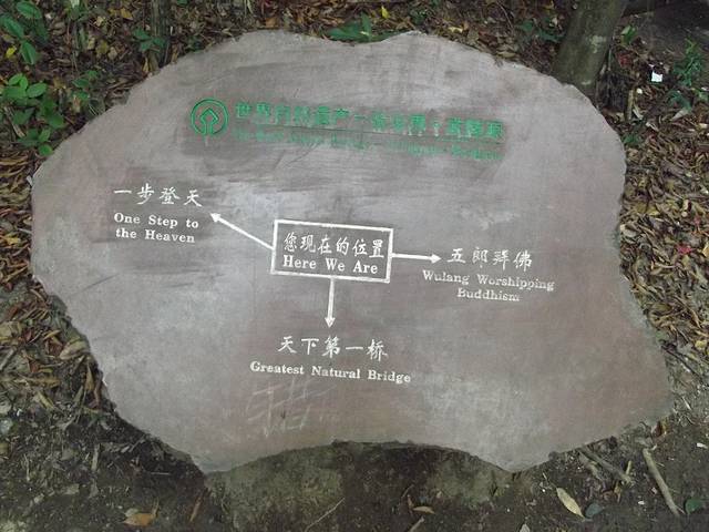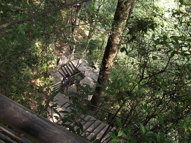 看完空中走廊,原路返回,到刚才说的那个三叉路口,往路牌的天下第一桥方向(现在是在右手边),直接走近路,不要担心走错,诀窍是看到有垃圾就没错(哈哈,中国人的特性,我也丢过),最多10分钟就到了。上去一点就是乌龙寨停车场了。到对面等环保车去神堂湾。