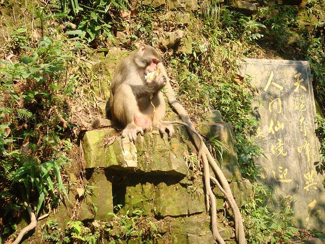 车子走走停停(上人),大约一个小时到了张家界国家森林公园大门。下车买票进园,门票245+3保险(网上没有优惠的)。一进去,一片尖叫,原来大师兄来了。张家界猴子很多,原本是人逗猴子,现在成了猴子逗人了。提醒:千万别将食物放在透明袋子里手提着,一定会被猴子抢的。一定要放在背包里。如果要去喂猴子早准备好,喂完如果猴子继续纠缠,就拍拍手然后将手摊开,OK了。