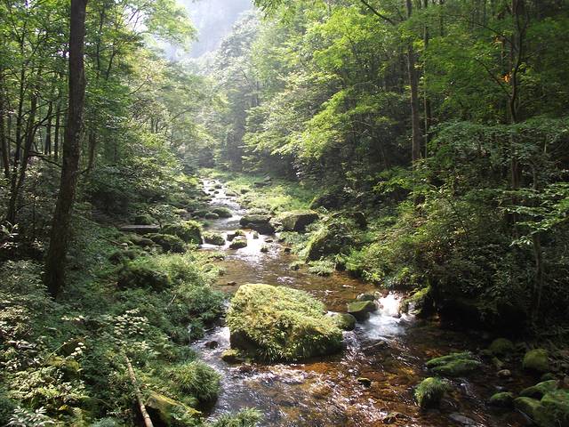 顺着平缓的小道进入美丽的金鞭溪前行。