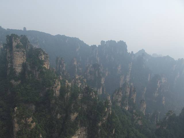 因为是从乱窜坡上来的,没有看到百龙天梯,所以在此介绍一下。在神兵聚会可以看到百龙天梯的全景。据坐过的人说,跟大城市的观光电梯差不多,没啥感觉,外表看起来壮观而已。并且天梯上去到袁家界后花园一带没什么景点,花72大元真不值。所以徒步游的是绝不会走那条路线的,那都是团队游走的。