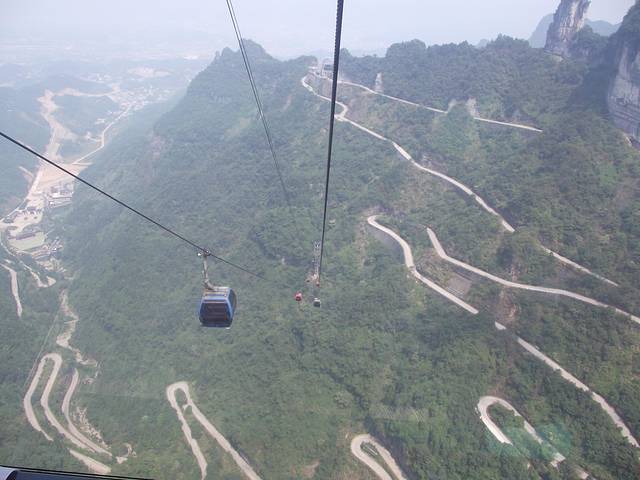 火车晚点到10点58分才到。一下火车,急忙穿过广场,步行去天门山。从火车站到天门山索道下站很好找,看着天上的索道就行了。当然也可以打的前往。