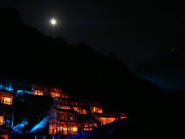 天门狐仙是全球第一部以高山峡谷为背景的实景音乐剧,纵深5公里,海拔高差1100米,飞瀑流泉、雾岚飞烟、花草林木皆为舞台的天然背景。这里有全球最大的玻璃钢舞台,通体透明奇幻夺目,还有跨度为60米的空中飞桥横跨峡谷,更有大规模的灯光工程照亮天门群峰及逼真震撼的漫天大雪效果,令人叹为观止。看过以后,认为还是值得的,特别是中秋之夜,当月亮从天门山山巅慢慢爬上来的时候,特别的凄美!好一个难忘的中秋节!!