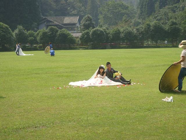 大氧吧广场有一块很大的绿地,是用来拍婚纱的。从绿地边走过去坐环保车(景区所有环保车都是免费的,只要有位随叫随停)到黄石寨索道下站坐索道上山(65元,网上有订60)。要提醒一下:千万别走路上山,一个上山路没什么风景,二太耗时间、体力。最好的路线是上山索道,下山步行。
