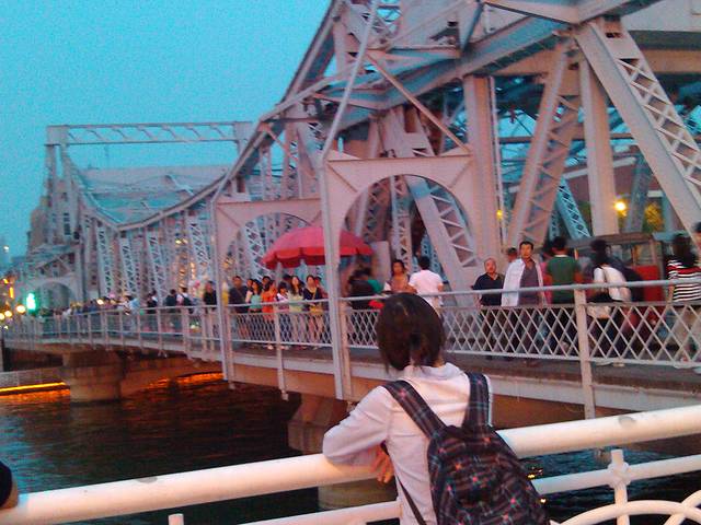 建议出游时,沿着海河去往意大利风情区,这样沿途可以看到很多风情。当时,遇到了拍电影的一幕。