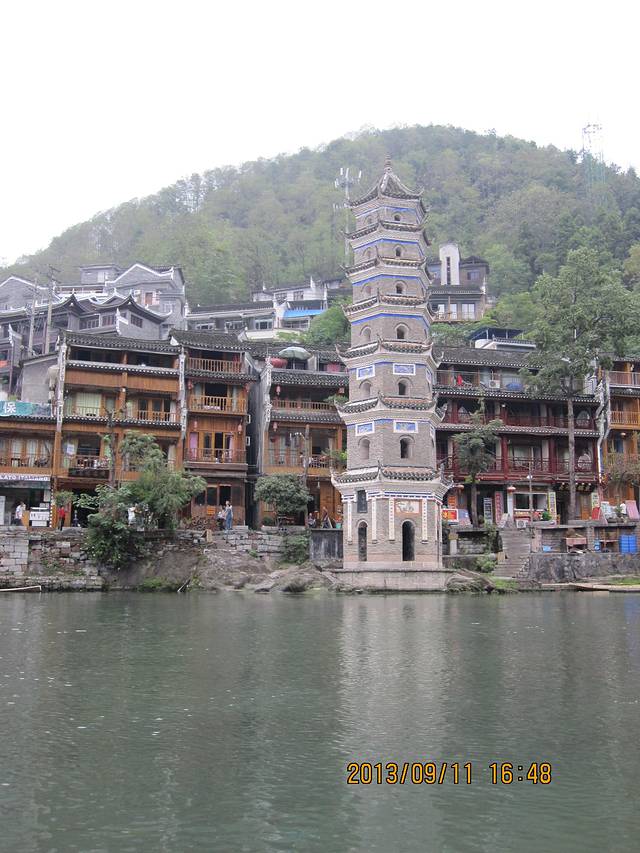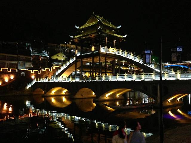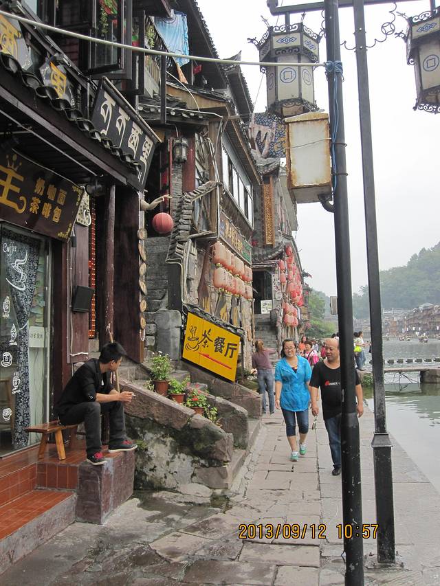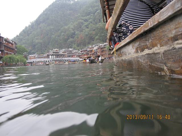 11号13:20分准时到达吉首车站,由于在火车上结交了同样从天津到湘西的旅游团,下火车后搭乘该团旅游大巴一同前往凤凰古城,15点到达凤凰,首先到预定好的客栈办理手续,安排好住宿后开始游览,包括了凤凰大部分景点,天黑后游凤凰夜景,美不胜收