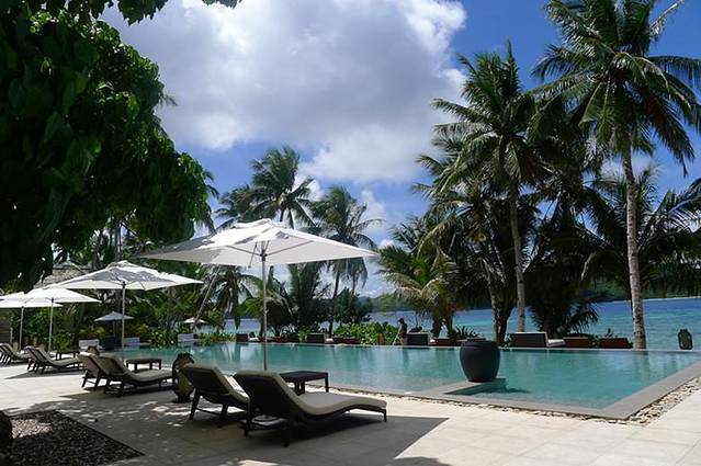 如果是情侣/夫妻入住,可以在日落时分在海滩上开始享用浪漫的晚餐。如果是闺蜜的话,可以去pool bar,一边泡在泳池里,一边欣赏晚霞,一边品尝美酒佳肴。比较喜欢泡在泳池了——没人,自己一个人包揽整个海边泳池。晚餐叫了一个沙拉,两个主食,还有我最喜欢的鸡尾酒Mai Tai,Mai Tai好喝,不过闺蜜叫了杯Lychee Matini,说没喝过这么难喝的matini。哈哈