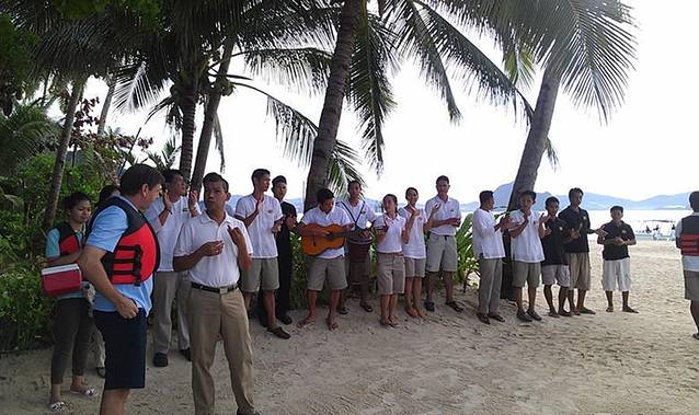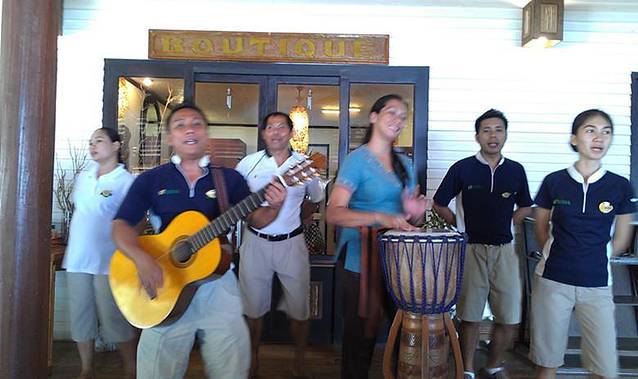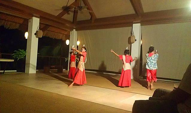 度假村晚上有时有当地民族特色的表演,可以前往体验一把当地特色的表演,其中一项和中国的竹竿舞很像,度假村员工也会拉客人一起跳。