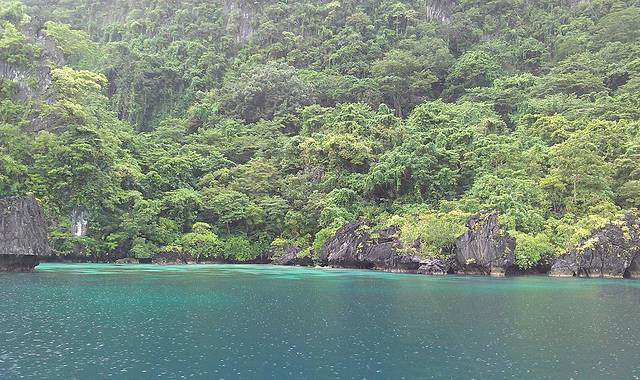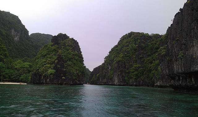 Big Lagoon和Small Lagoon两个泻湖是El Nido两个非常出名的船游和浮潜的点。早上约9点出发,坐快艇到BigLagoon船游,大泻湖就在Miniloc Island的边上,快艇就10分钟船程,平时也可以让度假村向导带着kayak直接从度假村过来。泻湖翡翠绿的海水让人时刻惊讶地合不拢嘴,如果幸运,在清澈的水里还可以偶遇善良的小鲨鱼呢。不过因为在菲律宾的雨季造访爱妮岛,所以出游当日天空飘着小雨点,虽然有点小冷,但是景观一绝,不愧是巴拉望的一大卖点。