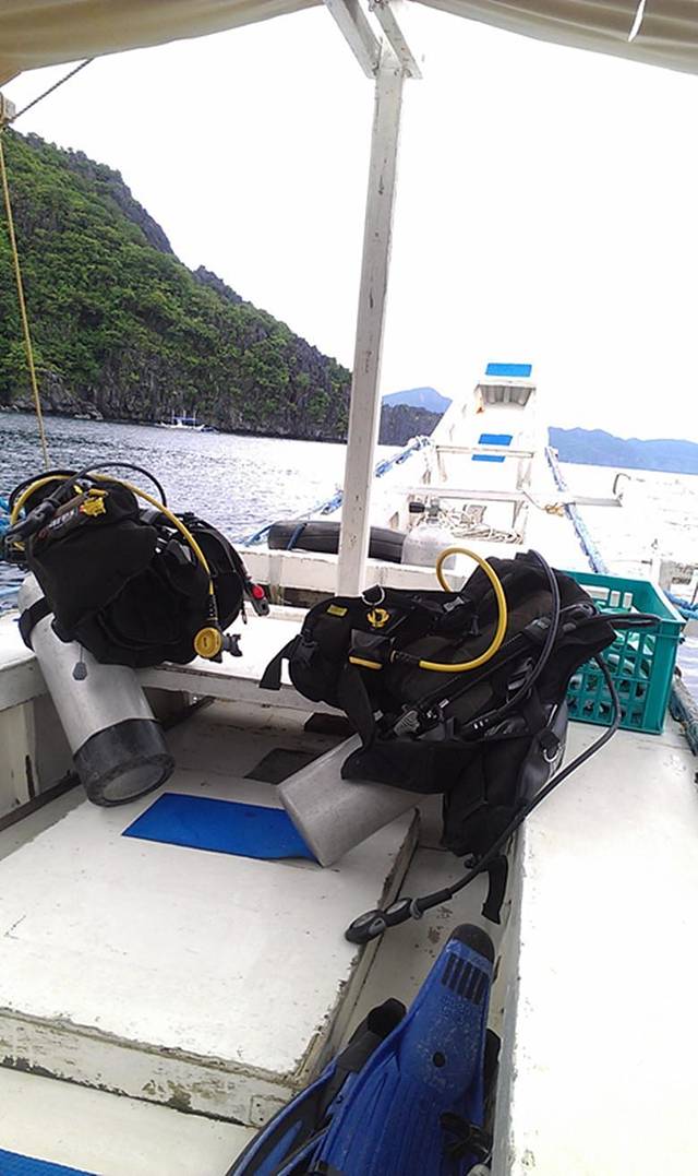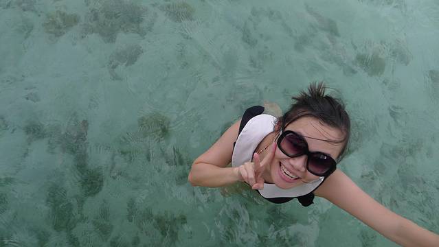 由于pangulasian周边的海底世界更美,也推荐潜水,相对于M岛,P岛的Discovery Diving收费比较五星级一点(约8000peso/人(含税及服务费))。当天下午闺蜜参加了P岛的DSD,教练John很认真及专业,讲解幽默而又简明易懂。不过好像岛上只有一个潜水教练,如果要潜水,必须提前预约,教练好像业务比较繁忙。闺蜜潜水,我去浮潜拍照。虽然工作人员有提醒让我不要超出他们视野范围,而我一个不小心就飘太远,最后还是工作人员开游艇出来接我回去的。注意,太阳真的很猛,最好还是跟早上的队伍去浮潜。